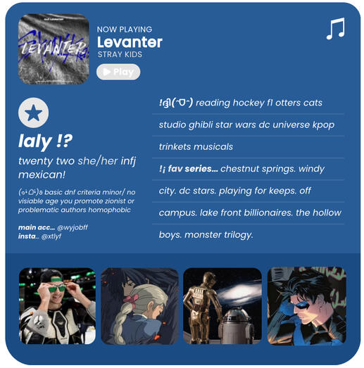 likes reading hockey f1 otters cats studio ghibli star wars dc universe kpopdnf basic dnf criteria minor/ no visiable age you promote zionist or problematic authors homophobic
